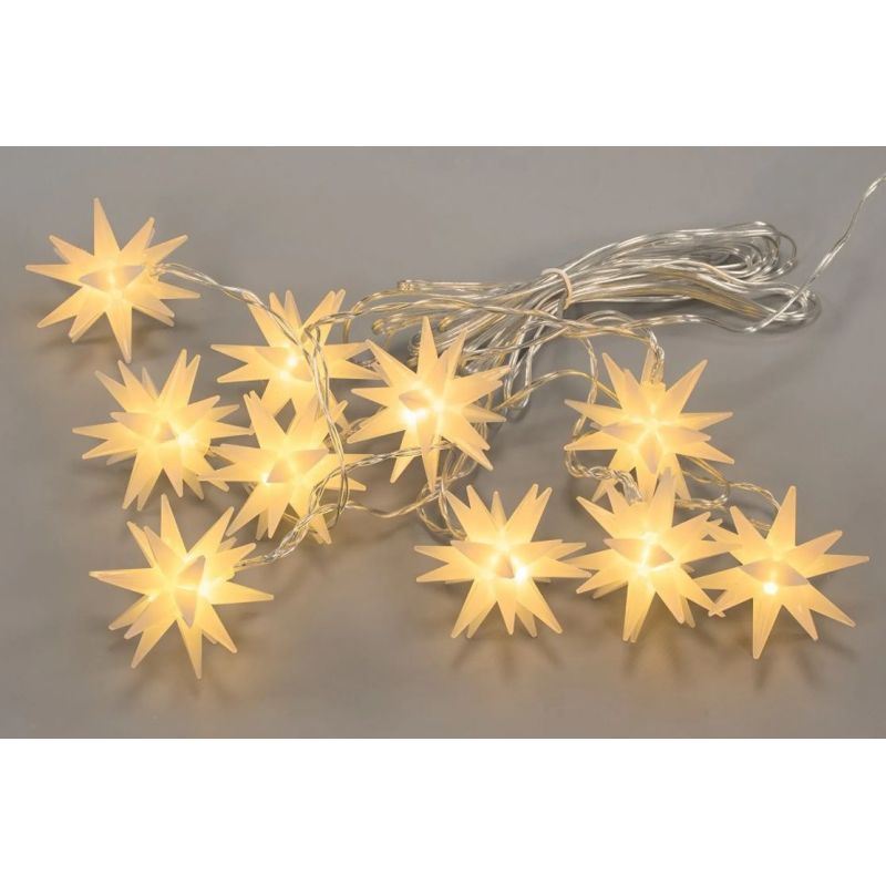 Na tomto světelném dekorativním řetězu najdete 10 "vánočních" hvězd o průměru cca 6 cm. Hvězdy jsou spojeny transparentním kabelem a řetěz je napájen z elektrické sítě. Nejvíc oceníte časovač, který řetěz obsahuje. Pokud osvětlení zapnete do pozice "Timer" tak začne svítit po dobu 6 hodin, poté se na 18 hodin vypne a poté opět zapne sám. LED diody jsou oblíbenou náhradou za klasické žárovky. Oproti klasickým žárovkám LED diody nevyzařují teplo, jsou odolné proti otřesům a můžete díky nim ušetřit téměř až 90% energie, kterou by spotřebovaly klasické žárovky.