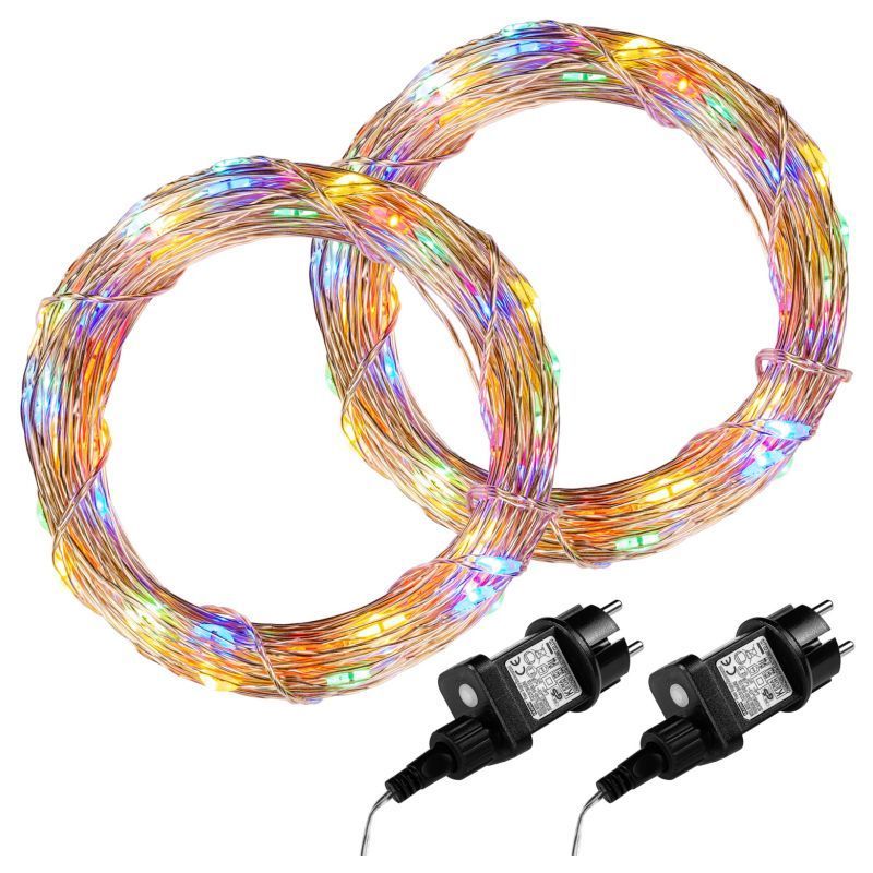 Světelné řetězy s LED diodami jsou ideální pro použití v období Vánoc jako dekorace v zahradě, osvětlení pro vánoční stromeček, nebo jako osvětlení balkónů. Barevné LED diody jsou umístěny na tenkém stříbrném drátku, takže osvětlení působí velice jemně. Vánoční řetěz obsahuje také časovač - osvětlení se po prvním zapnutí bude automaticky zapínat a vypínat. Vždy 6 hodin bude svítit a 18 hodin bude v nečinnosti.