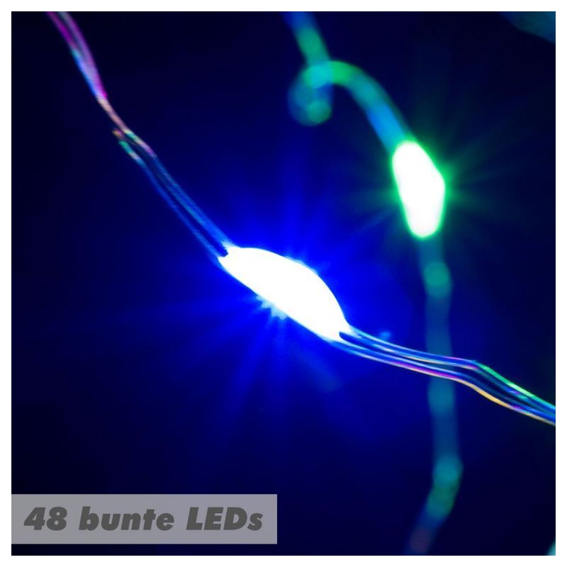 Nejen o Vánocích vytvoří 48 barevných LED diod v tomto světelném řetězu kouzelnou náladu ve vašem interiéru, ať už v zimní zahradě nebo ve svátečně vyzdobeném obývacím pokoji. Také na večírcích nebo ve výloze je tento lehký dešťový řetěz absolutním lákadlem pro oči. Samozřejmě je to také skvělá dekorace pro jakoukoli příležitost. Spotřeba energie je díky účinné technologii LED velmi nízká. Pomocí časovače můžete sami rozhodnout, kdy chcete osvětlení zapnout. Volně volitelná funkce časovače nebo nepřetržitého svícení.