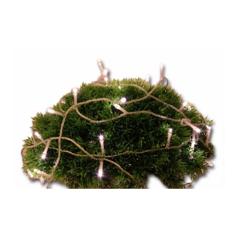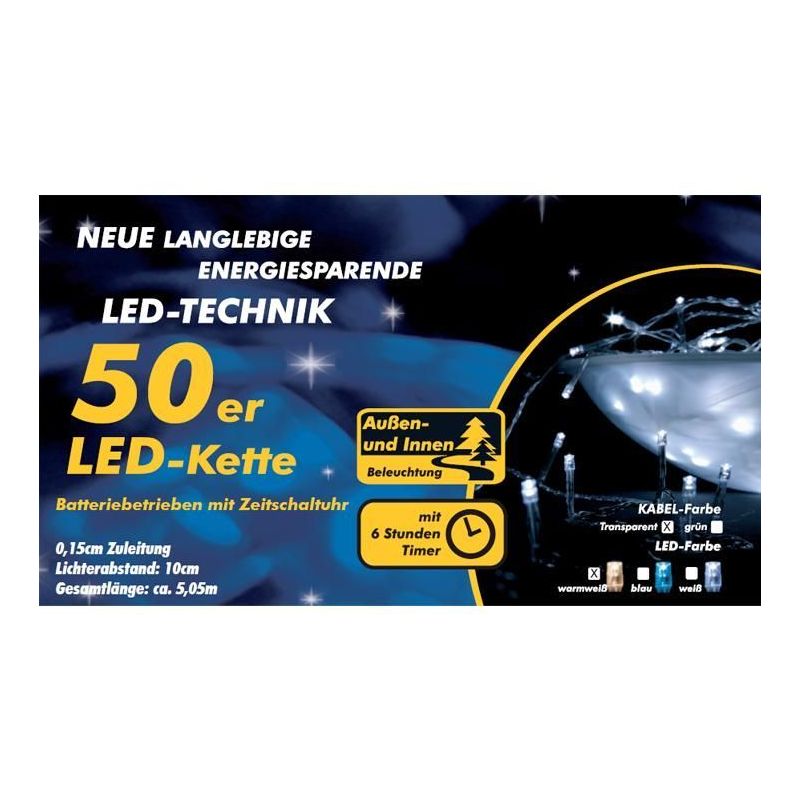 Tento světelný řetěz se výborně hodí jako dekorace Vašeho domu či zahrady. Díky pohonu na baterii máte při dekorování zcela volnou ruku, jelikož nemusíte přemýšlet nad tím, kde máte k dispozici zásuvku. Díky zabudovanému časovému spínači se můžete sami rozhodnout, kdy se má Vaše osvětlení zapnout. Jednoduše si tlačítkem navolíte čas, ve kterém se Vaše dekorace rozsvítí. Nyní je uložen interval, v němž diody 6 hodin svítí a 18 hodin jsou vypnuté. Světelný řetěz s 50 LED diodami a časovým spínačem je určen pro vnitřní i venkovní použití.