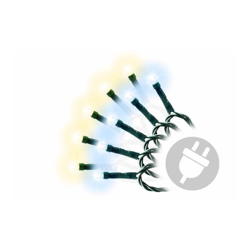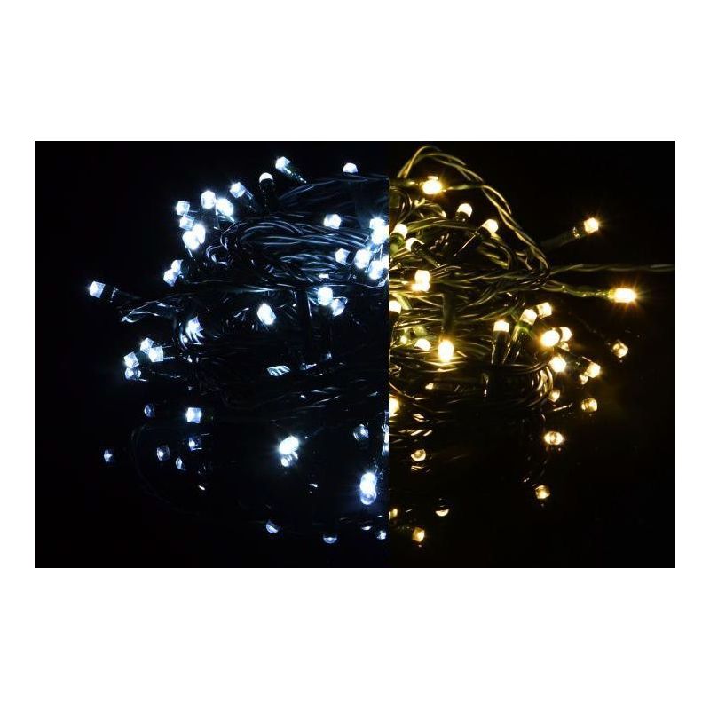 Světelný řetěz vhodný pro vnitřní i venkovní použití - jak na okno či chodbu, tak i na dům či stromek. Osvětlení není výhradně určeno pro dobu Vánoc, ale můžete ho využít i pro osvětlení Vašeho stanu či zahrady během letních měsíců. Světelný řetěz má 9 blikajících funkcí vč. změny barvy ze studené bílé na teple bílou. LED diody jsou oblíbenou náhradou za klasické žárovky. Oproti klasickým žárovkám LED diody nevyzařují teplo, jsou odolné proti otřesům a můžete díky nim ušetřit téměř až 90 % energie, které byste jinak spotřebovali na klasické žárovky. Průměrná životnost LED diody je 2000 hodin svícení (normální žárovka cca 1000 hodin v závislosti na svítivosti). LED řetěz splňuje německé normy a je na něj vystaven certifikát bezpečnosti GS. Splňuje stupeň krytí IP 44 (pro venkovní použití).